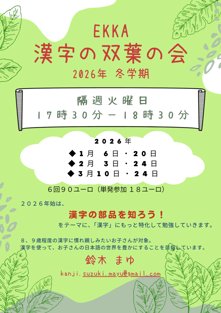 1月6日(火)から2026年冬学期を開催するので、以下の通り、お知らせ致します。