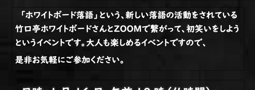 今年は笑いの一年になりそうです! 9日の新春寄席に続いて、16日(日)は竹口亭ホワイトボードさんを招いての落語… 続きを読む ホワイトボード落語!